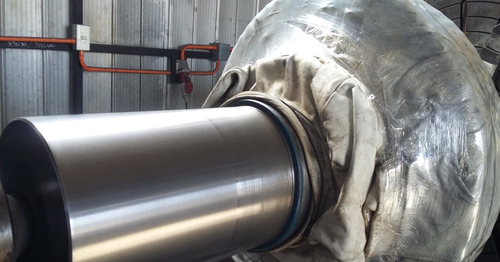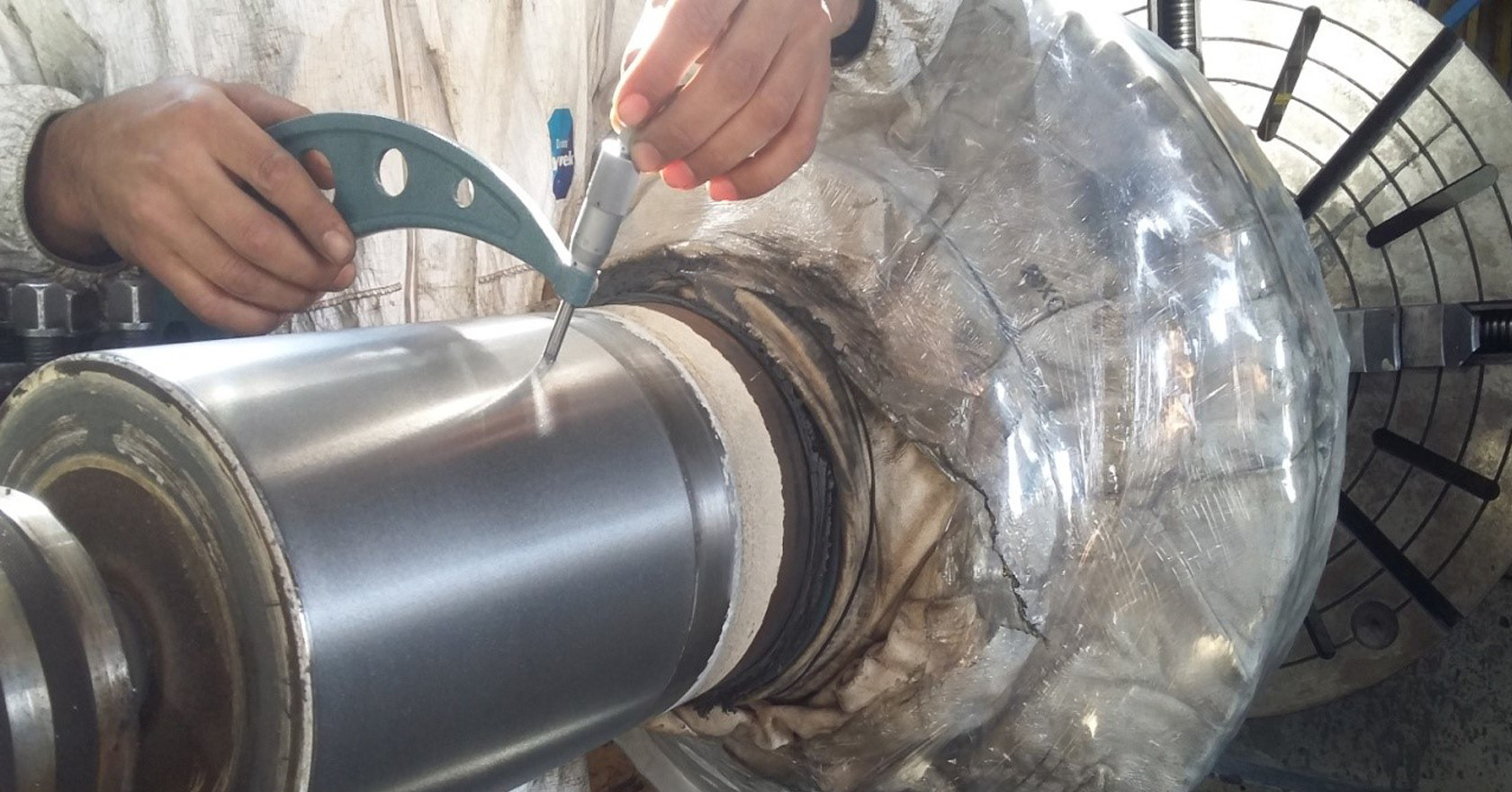 Reparación Eje Corona con un proceso de metalizado y Arco Spray ocupando para ello, material Base 75B y de Aporte 60T