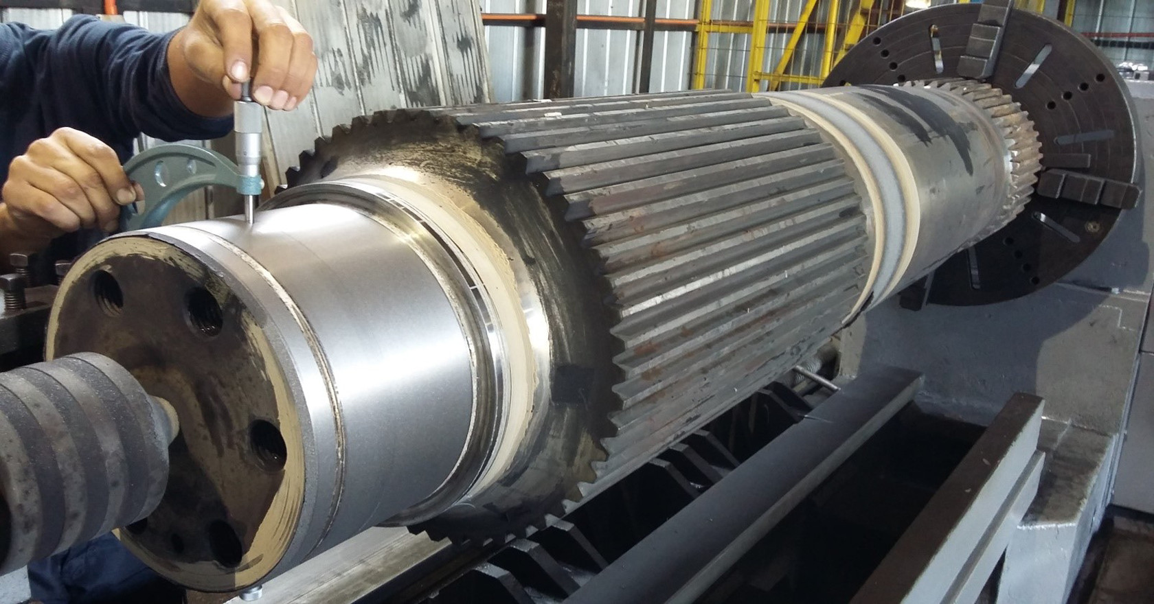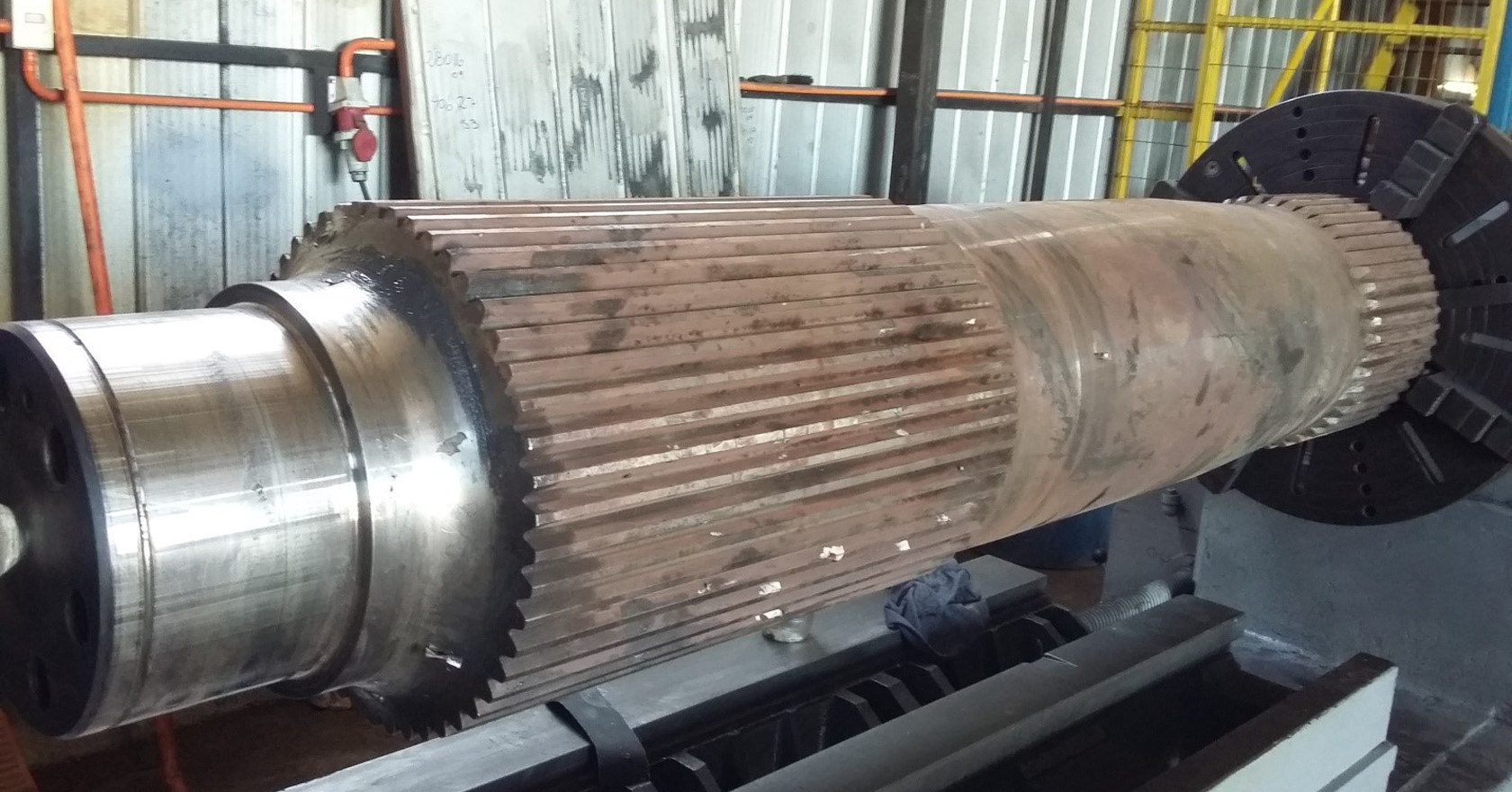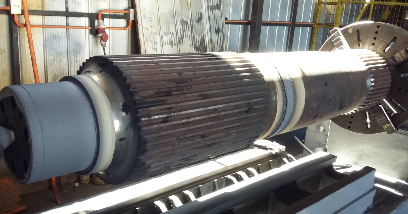 Reparación Eje Estriado con un proceso de metalizado y Arco Spray ocupando para ello, material Base 75B y de Aporte 60T